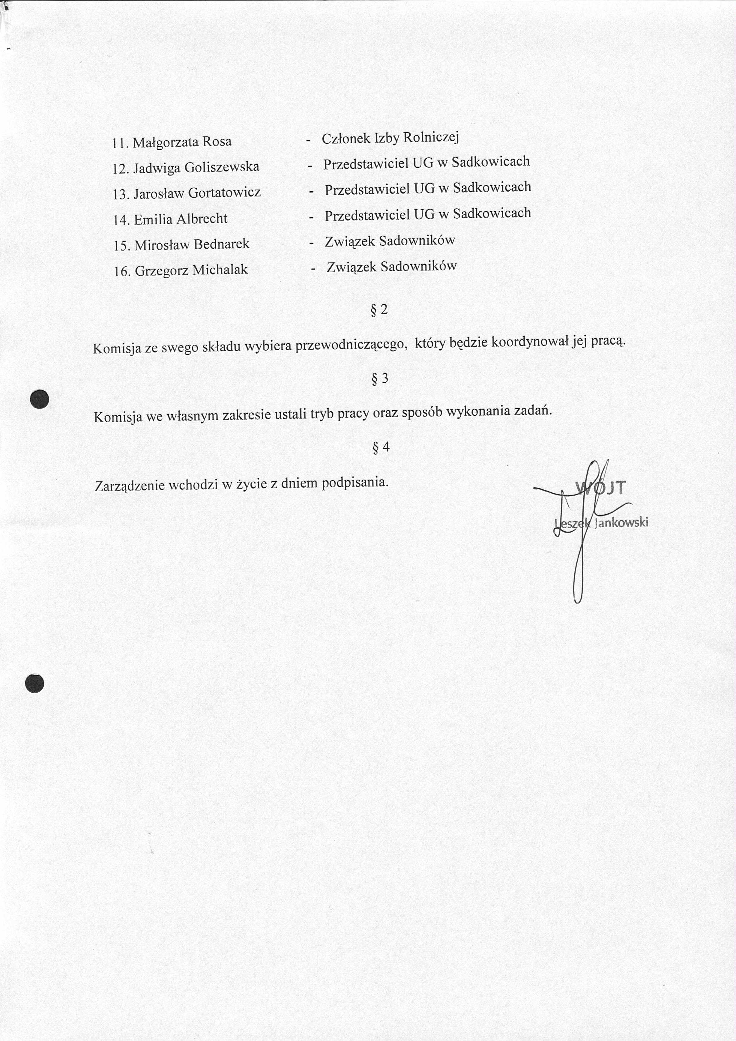 Zarządzenie Nr 16/07 Wójta Gminy Sadkowice z dnia 9 lutego 2007 roku